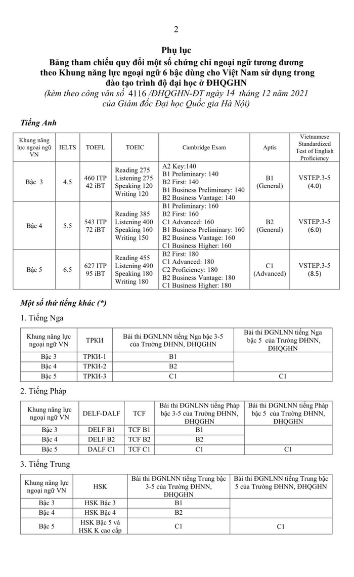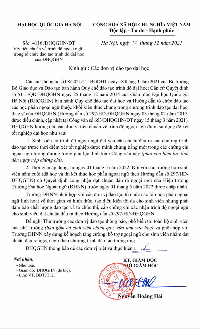 | Công văn số 4116/ĐHQGHN-ĐT của Đại học Quốc gia Hà Nội |
