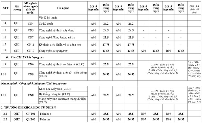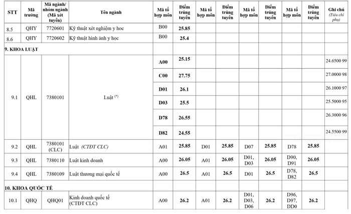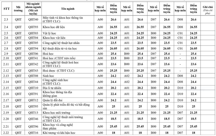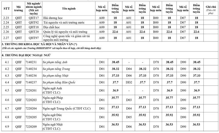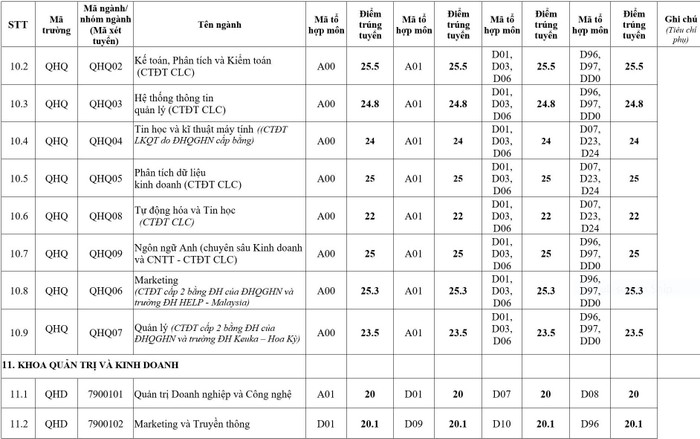 Điểm chuẩn của 12 trường, khoa trực thuộc Đại học Quốc gia Hà Nội