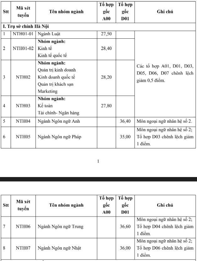 Nhìn chung điểm chuẩn năm nay của trường Đại học Ngoại thương khá cao, giao động từ 23,5 điểm đến 36,6 điểm.