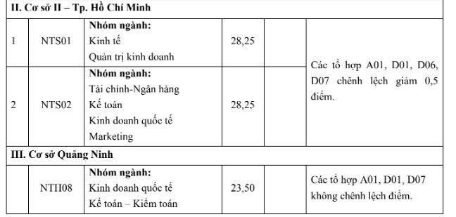 Ở cơ sở Quảng Ninh, điểm chuẩn thấp nhất so với 2 cơ sở Hà Nội và thành phố Hồ Chí Minh với điểm trúng tuyển là 23,5 điểm.