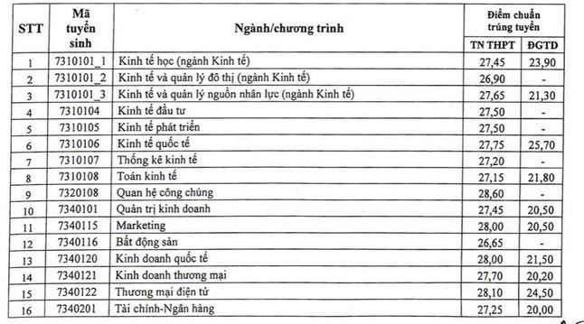 Ba trường top đầu khối ngành kinh tế ở phía Bắc là trường Đại học Kinh tế Quốc dân, trường Đại học Ngoại thương và trường Đại học Thương mại đã công bố điểm chuẩn trúng tuyển năm 2022, trong đó nhiều ngành có mức điểm gần như "chạm trần".