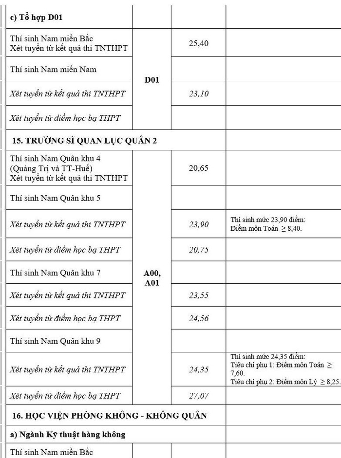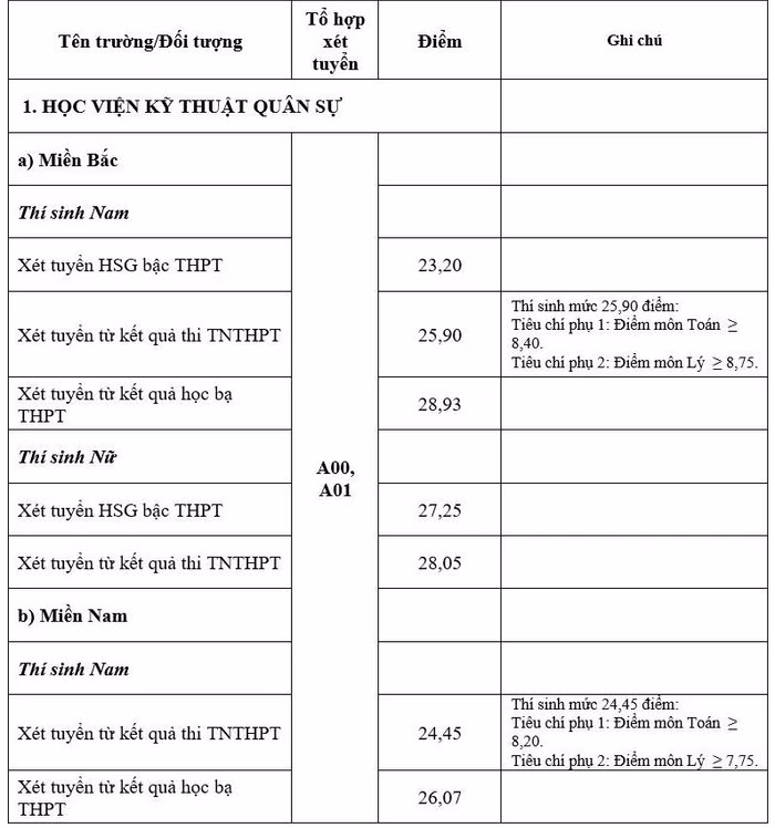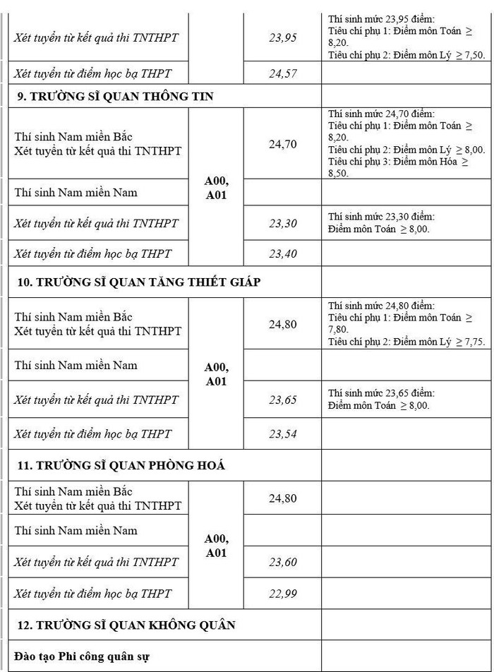 Điểm chuẩn năm 2021 của các trường quân đội, nhiều ngành trên 28 điểm