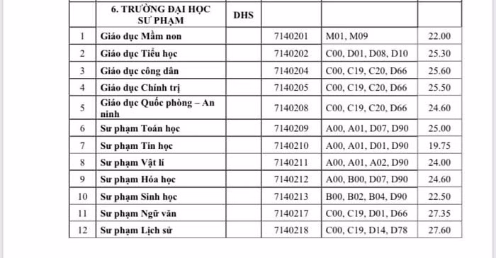 | 7 | 7140203D | Giáo dục Đặc biệt | D01;D02;D03 | 26.83 | TTNV <= 6 |