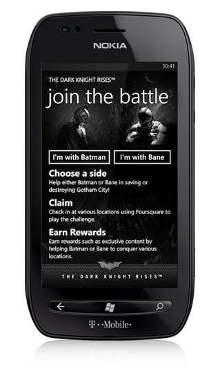 Nhà mạng này sẽ cung cấp Lumia 710 phiên bản Dark Knight Rises miễn phí cho người dùng trong khoảng thời gian từ 20/06 đến 31/08, tất nhiên là phải kèm theo hợp đồng sử dụng. Máy có các màu Trắng, Đen, Xanh Cyan, Vàng và Hồng. Ngoài logo Batman in ở mặt sau ra thì các máy này còn được cài sẵn phần mềm "The Dark Knight Rises" chứa các nội dung liên quan đến bộ phim này như thông tin phim, danh sách rạp chiếu, thời gian... và một số hình nền của phim.