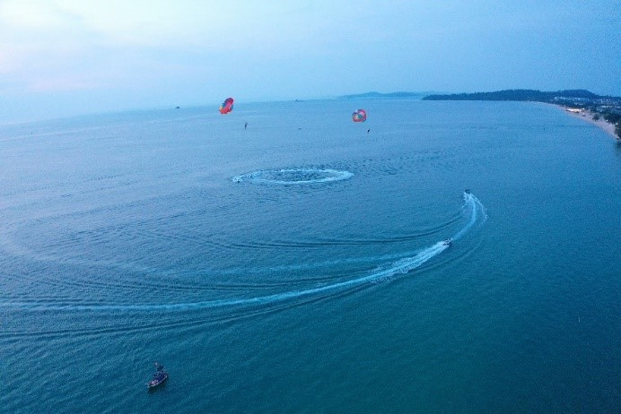 Màn trình diễn đầy ấn tượng khi những chiếc jetski (moto nước) xé sóng tạo nên những dòng bọt sủi trắng xóa cả một góc trời và những chiếc dù bay parasailing đầy màu sắc chao liệng trên bầu trời xanh biếc tạo nên khúc mở đầu hoàn hảo. Đại tiệc ẩm thực hơn 77 món ăn thượng hạng do các bếp trưởng tên tuổi của Vinpearl sáng tạo từ nguyên liệu thượng hạng như cá ngừ, cá hồng, cá hồi, bạch tuộc Nhật nguyên con, gà tây bỏ lò với sốt quả đỏ, bánh gato hoa quả tạo hình đặc biệt…