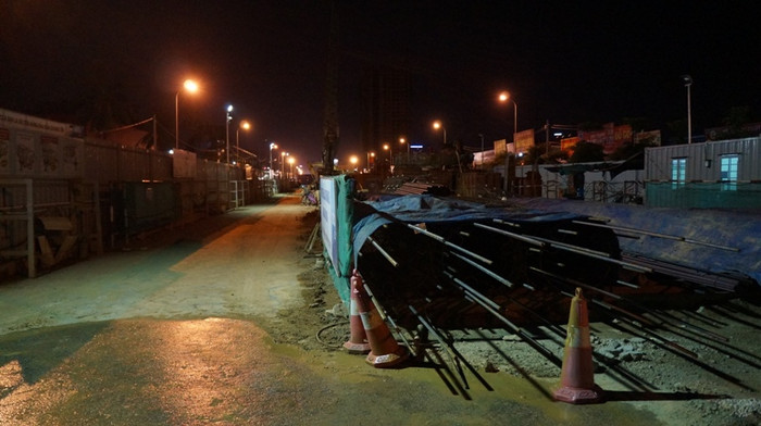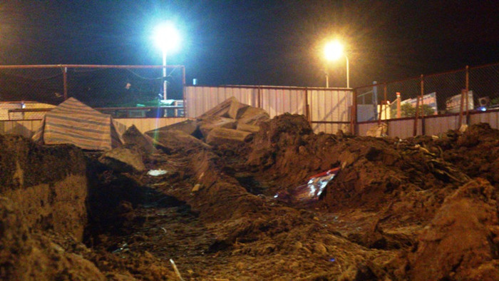 | Tại công trường thi công ga số 5, lúc hơn 8h tối đã không còn nghe thấy tiếng máy móc hoạt động |