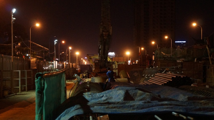| Hạng mục do nhà thầu DAELIM làm chủ, mới gần 9h tối công trường cũng đã rất vắng vẻ |