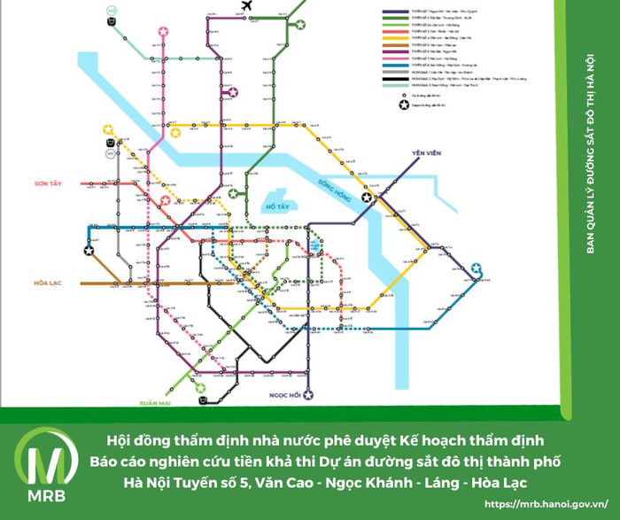 Tuyến metro số 5, Văn Cao - Ngọc Khánh - Láng - Hòa Lạc theo tiêu chuẩn đường đôi khổ 1.435mm, điện khí hóa với chiều dài 38,43 km( 6,5km đi ngầm; 2km đi cao và 29,93km đi trên mặt đất) với 21 nhà ga.