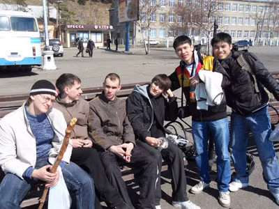 Nam (thứ 2 bên phải sang) và các đồng đội chụp ảnh lưu niệm tại Baikal trong lần thi toàn Nga năm 2010.