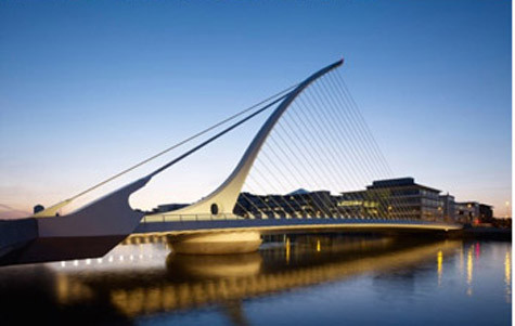 Trên sông Liffey, tôi tìm đến cây cầu tưởng niệm Samuel Beckett. Cây cầu có hình dáng mô phỏng một chiếc đàn harp. Khi chiều buông, mặt trời xuống thấp và nền trời chuyển sang màu hồng ửng bởi vô vàn đám mây rực rỡ, cây cầu với thiết kế thanh lịch, duyên dáng của mình khiến ta liên tưởng đến hình ảnh một tiên nữ nằm nghiêng nghiêng ôm hạc cầm bên dòng sông thơ mộng.