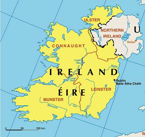 Ireland là một quốc gia nằm tại phía Tây Bắc châu Âu. Ireland chiếm khoảng 5/6 phía nam diện tích của đảo Ireland. Nước này giáp với Bắc Ireland (thuộc Vương quốc Liên hiệp Anh và Bắc Ireland) về phía Bắc, giáp với Đại Tây Dương về phía Tây và phía Nam, giáp với biển Ireland về phía Đông. Diện tích: 70,280 km2, dân số: 4,130,000 ngườI (theo thống kê năm 2005), thủ đô: Dublin, tín ngưỡng: Đạo Cơ đốc giáo, đơn vị tiền tệ: Đồng Euro.