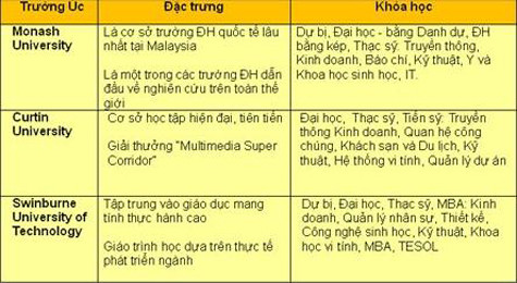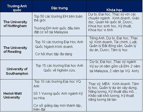 | Ví dụ so sánh chi phí học tại cơ sở Malaysia và trường ở Anh/Úc |