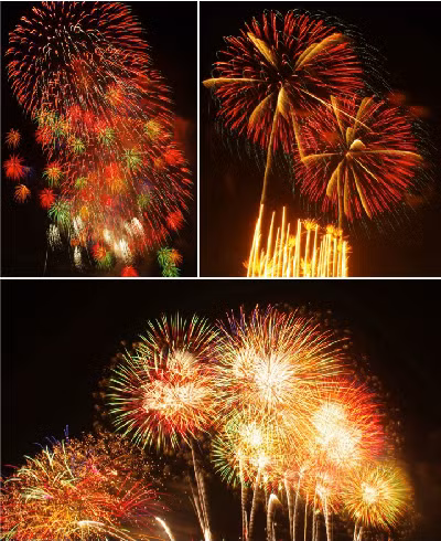 | Hình ảnh trên đường đi từ ga và tại địa điểm xem bắn pháo hoa ở bờ sông Yodogawa |