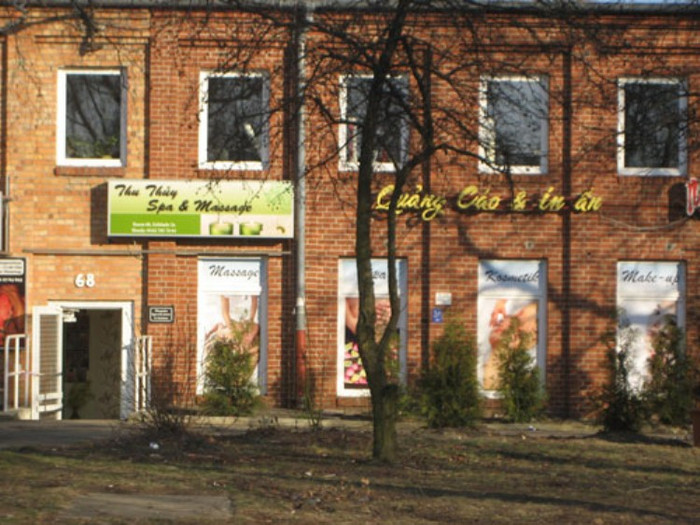 | Trung tâm thương mại Đồng Xuân (Đồng Xuân Centre) nằm trên con phố Herzberg ở quận Lichtenberg |