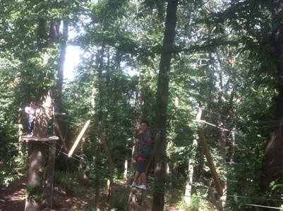 « Accrobranche » là một trò chơi đu dây mạo hiểm với nhiều hình thức. Bạn có thể chui qua các ống gỗ được mắc vắt vẻo trên ngọn cây; bạn có thể thử sức làm “spider man” khi leo trên “mạng nhện” cách mặt đất hàng chục mét; hay bạn cũng có thể đu người từ cây này sang cây khác như Tarzan...