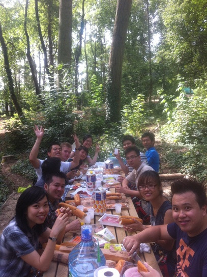 Có mặt lúc 10h30 sáng ngày 19/8/2012, điểm đến của chúng tôi là khu rừng sinh thái « Ecopark du Moulin de Sannois » (Khu rừng sinh thái này nằm gọn trong 1 khu rừng cây hạt dẻ ở gần thành phố Sannois, cách trung tâm Paris 30 km). Có lẽ để tránh thời tiết nắng nóng 38 °C ở Paris, vào rừng pic-nic là một ý tưởng tuyệt vời. Hành trang cho một buổi du ngoạn như vậy rất đơn giản và gọn nhẹ: chỉ là bánh mỳ, pate, jambon và chút hoa quả tráng miệng...Mặc dù đồ ăn không cầu kì nhưng ai nấy cũng đều cảm thấy rất thoải mái và thích thú.