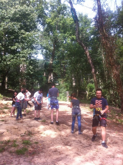 Điều đặc biệt của khu rừng này là chúng tôi không những có thể ngồi ăn uống, tán gẫu với nhau dưới tán cây mà còn có thể tham gia các trò chơi mạo hiểm.