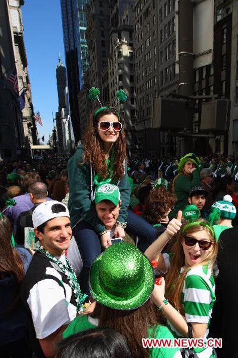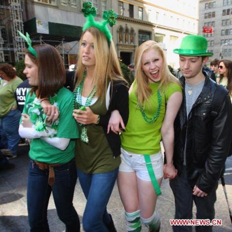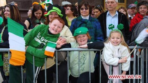 | Các bạn trẻ chào mừng ngày quốc lễ quan trọng ở Dublin, Ireland hôm 11/3/2012 |