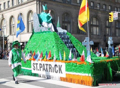 | Đường phố Yonge, trung tâm Toronto, Canada chào mừng ngày lễ Thánh Patrick hôm 11/3/2012 |