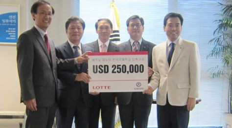 Tập đoàn LOTTE (Hàn Quốc) vừa tài trợ 250.000 USD cho Dự án xây mới Trường học Hàn Quốc - Hà Nội tại phường Mai Dịch (Cầu Giấy). Với tâm niệm phát triển kinh doanh phải luôn song hành cùng công tác xã hội, LOTTE đã nhiệt tâm hỗ trợ khoản tài trợ này nhằm đóng góp tích cực vào việc sớm hoàn thiện ngôi trường cho trẻ thơ.