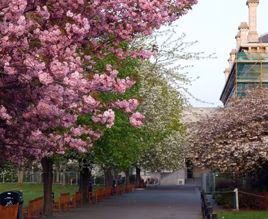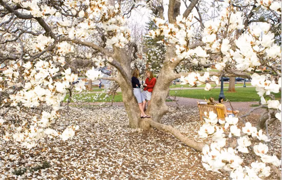 Đại học Princeton (Bang New Jersey, Mỹ) thiết kế nổi bật với phong cách Gothic cổ điển cùng rất nhiều cây xanh và hoa nở rộ đón chào mùa mới.