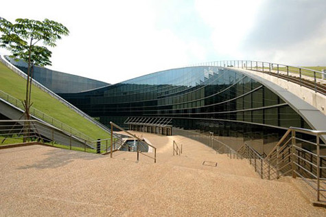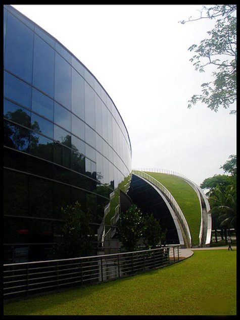 | Được người Việt Nam chúng ta hiểu là "khoa" nhưng thực chất công trình lớn không thua gì một trường dạy về nghệ thuật độc lập. Thiết kế của tòa nhà rất đặc biệt, gồm 5 tầng được xây dựng với nhiều đường mái nhà kéo dài từ dưới mặt đất lượn thẳng lên đến tầng thượng giống như một vầng trăng khuyết. Không chỉ vậy, phần mái này còn được trồng cỏ tự nhiên xanh mướt khiến cho công trình hòa quyện vào môi trường vốn nổi tiếng không khói bụi của Singapore. |