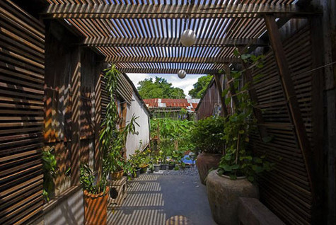 | Sân sau của thư viện rất gần gũi với thiên nhiên |