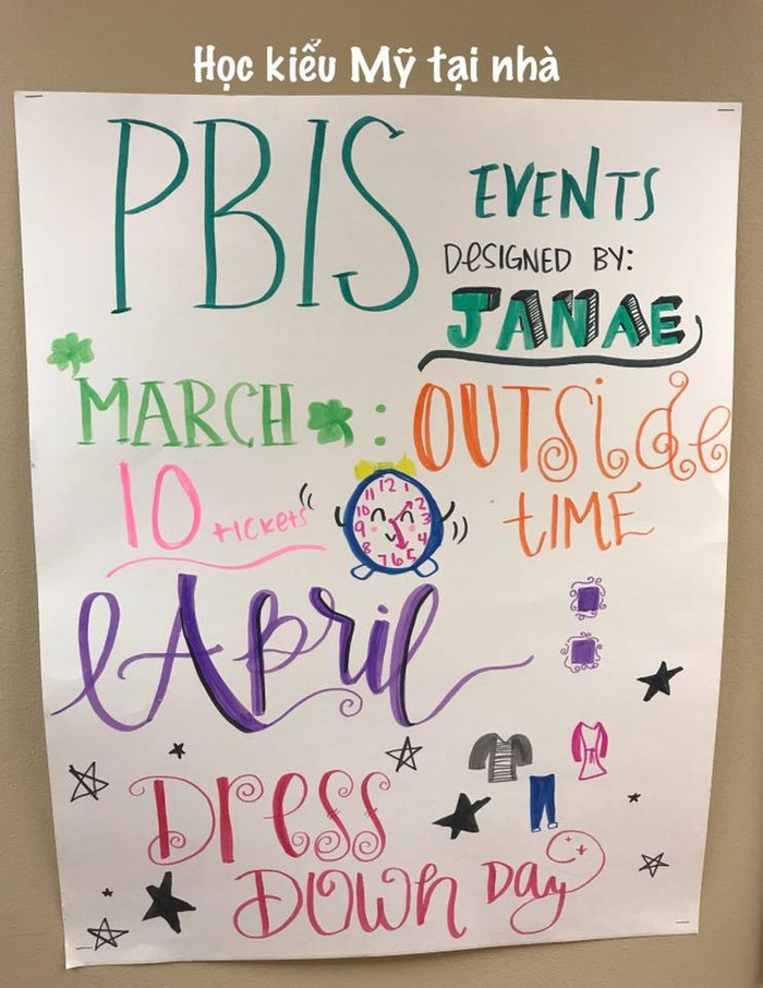 Ví dụ trường cũ nơi tôi từng giảng dạy có biểu tượng là con sư tử con (cub) thì chọn tên tắt cho bộ khung PBIS là PAWS (Positivity, Acting, Working together, Safety).