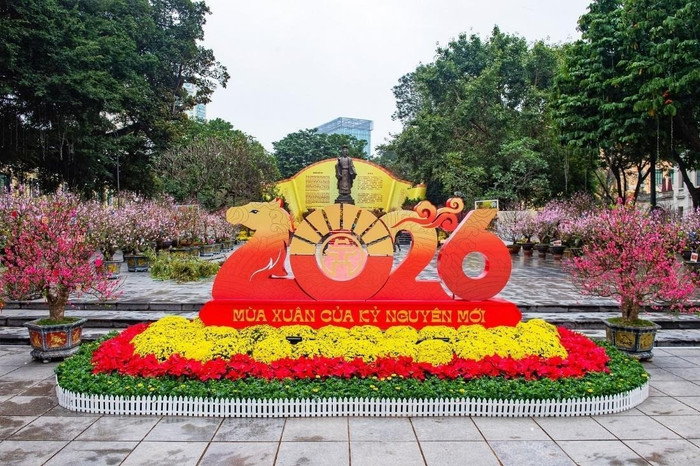 Không gian hoa xuân tại vườn hoa Lý Thái Tổ là điểm hẹn du xuân lý tưởng cho người dân Tết Bính Ngọ 2026.