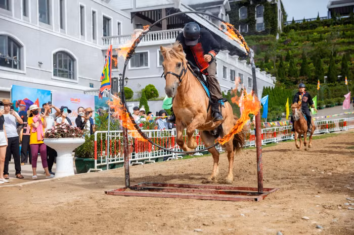 Những ngày qua, hàng chục nghìn du khách đã vô cùng hào hứng đón xem những màn cưỡi song mã, vượt chướng ngại vật, nhảy vòng lửa... vô cùng độc đáo.