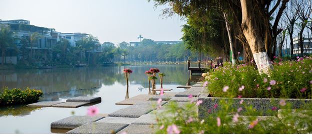 Theo đại diện của ban cây xanh Ecopark cho biết, có hơn 30 loài hoa và 25 loài cây các kích cỡ đang được trồng trên cung đường này. Mỗi loài hoa sẽ phù hợp cho khí hậu và thời tiết khác nhau, chính vì thế, đây sẽ là cung đường 4 mùa hoa luôn rực rỡ và khoe sắc. Đặc biệt vào mùa hè, đây sẽ là cung đường ven hồ rợp bóng cây xanh, để trẻ con có thể lăn dài trên những bãi cỏ hay thoả thích chạy chân trần trên những cung đường mà không bị nắng nóng.