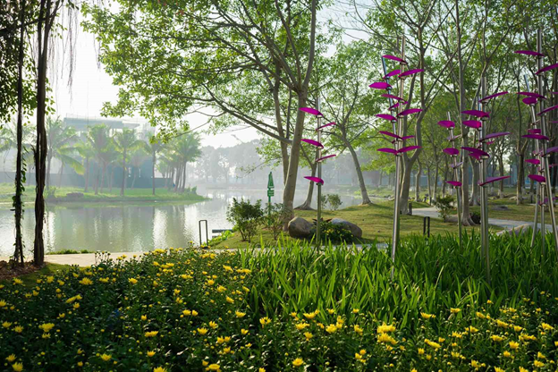 Vẫn với triết lý phát triển và xây dựng không thay đổi trong hành trình gần 20 năm qua, người ta vẫn luôn bắt gặp hình ảnh của thiên nhiên, cỏ cây hoa lá tại những cung đường rợp bóng cây xanh ở Ecopark.
