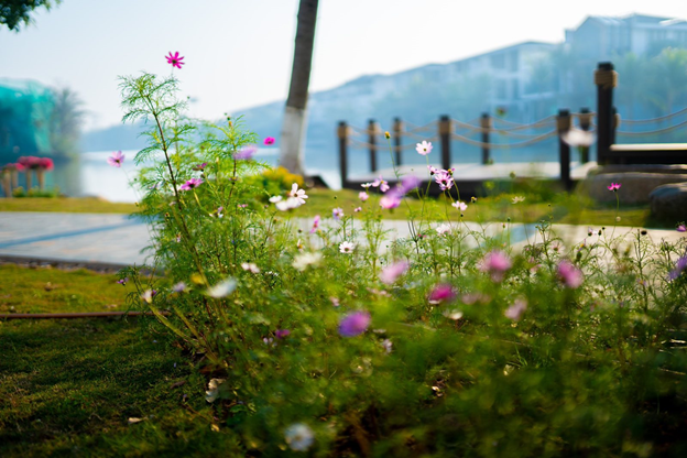 Hoa cỏ, cây cối ở đây được trồng thành nhiều tầng, nhiều lớp tạo cảm giác mát mẻ cho người đi dạo và ở đây gần như nắng không chạm đến đỉnh đầu.