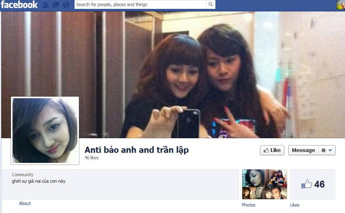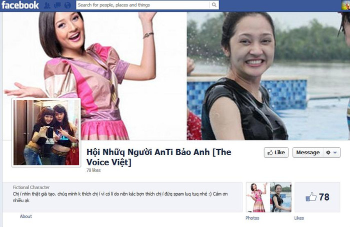 | Có lẽ đây là fanpage được lập ra sớm nhất và thu hút được lượng like nhiều nhất về chuyện anti Bảo Anh. |
