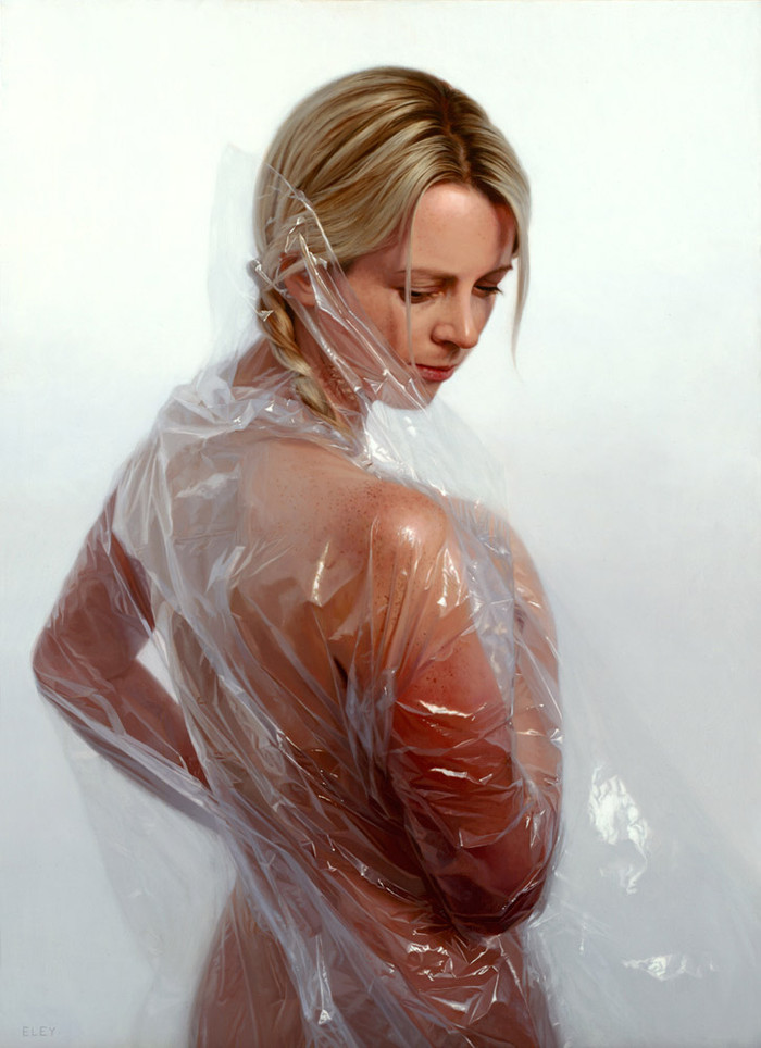 | Được thực hiện trên loại vải đặc biệt của Bỉ, người mẫu trong những bức tranh vẽ của họa sĩ Robin Eley hoàn toàn không khoác trên người một mảnh vải nào, chỉ choàng hờ hững một tấm nilon mỏng nhàu nát. Chính hình ảnh của những tấm nilon đó khiến mọi hình ảnh trở nên đặc biệt và thật đến không tưởng. |