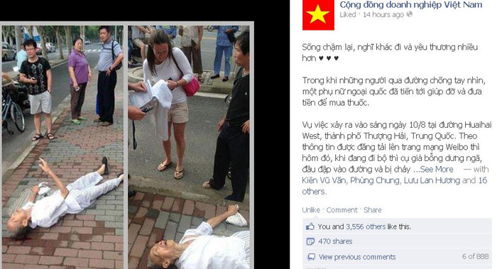Nickname Mong Manh chia sẻ: “Không thể tưởng tượng nổi. Mình cũng đã gặp trường hợp tương tự. Tối hôm đó bọn mình đi chơi thì gặp trời mưa to. Bọn mình đi dạo và gặp một người ngã giữa đường bất tỉnh mà người qua lại cũng chẳng quan tâm. Chỉ lúc bọn mình tới đỡ họ dậy và kêu mọi người đi đường giúp thì họ mới dừng lại vì hiếu kỳ. Kết quả còn bị mấy vị bác sỹ hằn học vì tội đó nữa. Không hiểu nổi”. Thành viên Peter Phan lên tiếng: “Mình không có ý vơ đũa cả nắm! Nhưng mình xin lỗi nhé, các bạn thử nhìn lại mình đi, mình đã thấy quá nhiều rồi. Mỗi lần xảy ra đụng xe, tai nạn thì chả có ai vào giúp đỡ người ta, hầu hết chỉ dừng xe lại và đứng nhìn, còn có kẻ hôi của nữa chứ! Có người Việt Nam ta có tình người hơn Trung Quốc ở cái còn đứng lại nhìn được chứ không nhẫn tâm quay mặt bỏ đi”.