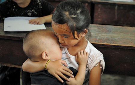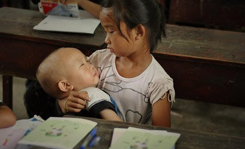 Chính sách một con không được tuân thủ nghiêm ngặt ở các vùng nông thôn Trung Quốc, kèm theo đó là tình trạng ồ ạt lên thành phố kiếm sống do kinh tế quá khó khăn là lí do khiến nhiều học sinh như Long Trương Hoan phải ẵm em đến trường học. Bức ảnh làm nhiều người xúc động và đáng để chúng ta phải suy ngẫm.