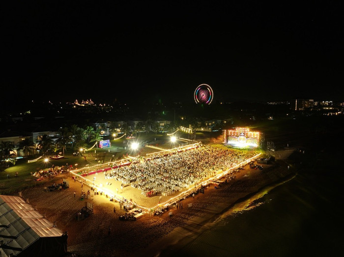 Tại Vinpearl Wonderworld Phú Quốc, hàng ngàn vị khách đặc biệt đã có hành trình countdown đỉnh cao dưới ánh hoàng hôn ngũ sắc trứ danh và thưởng thức dạ tiệc buffet đón năm mới trên bãi biển Wake Up New Year Countdown Party. Đại tiệc được thiết kế chỉn chu và tinh tế trong gian khoáng đạt và rì rào tiếng sóng vỗ của bãi biển riêng tư, mang đến trải nghiệm đón năm mới theo phong cách vừa “chill”, vừa rộn ràng nhưng vẫn đẳng cấp, mãn nhãn.