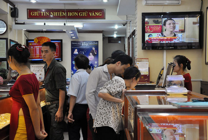 Ngay trong sáng ngày 28/6, khi giá vàng bán ra rơi về mức 35,1 triệu đồng/lượng, nhiều người dân tại Hà Nội đã đổ xô đi mua vàng. Phunuonline đưa tin, tại cửa hàng vàng thuộc Công ty vàng SJC chi nhánh Hà Nội (phố Giang Văn Minh), khách mua là chủ yếu. Càng về trưa, dù giá vàng đã quay đầu tăng trở lại nhưng lượng khách đến cửa hàng càng đông. Hầu hết tại phòng giao dịch ở bên ngoài cửa hàng không còn chỗ đứng, nhân viên bảo vệ phải “phân luồng” hướng dẫn khách xếp hàng theo thứ tự.