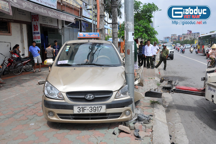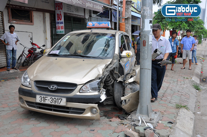 Theo ghi nhận bước đầu chiếc xe taxi hiệu Hyndai 4 chỗ mang BKS: 31F – 3917 đang lưu thông theo tuyến Mai Dịch – ngã tư Hồ Tùng Mậu khi qua số nhà 1 đã mất lái leo lên vỉa hè và đâm trực diện vào một cột điện đèn đường. Phần đầu và bánh xe bên trái đã bị hư hỏng nặng. Rất may khi đó trên taxi không có khách và tài xế cũng không bị thương.