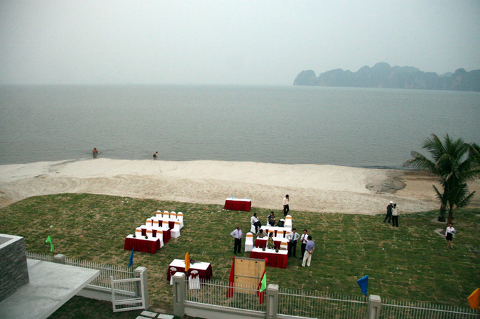 | Trước mặt căn biệt thự nhìn thẳng ra biển và có bãi tắm nhân tạo riêng, |