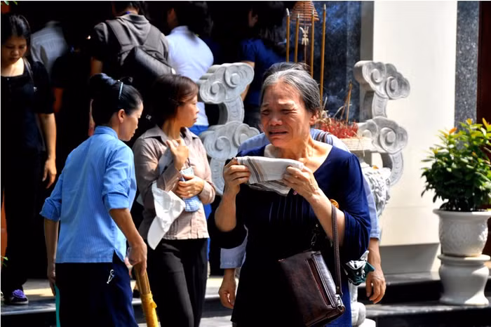 | Những người già cũng đến để mong muốn nhìn thấy linh cữu của Người |