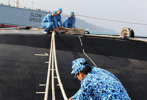 | Ở căn cứ tàu ngầm vịnh Cam Ranh, Việt Nam (nguồn mạng sina Trung Quốc ngày 6 tháng 11 năm 2015) |