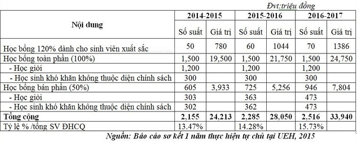 Bảng : Kế hoạch phân bổ học bổng giai đoạn 2014 – 2017