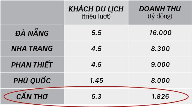 Đồng bằng sông Cửu Long có tiềm năng thu hút 5.3 triệu khách du lịch khám phá, tuy nhiên chỉ có 1.7 triệu lượt khách lưu trú với thời gian lưu trú dưới 1 đêm, doanh thu từ du lịch chỉ đạt 1.826 tỷ đồng.