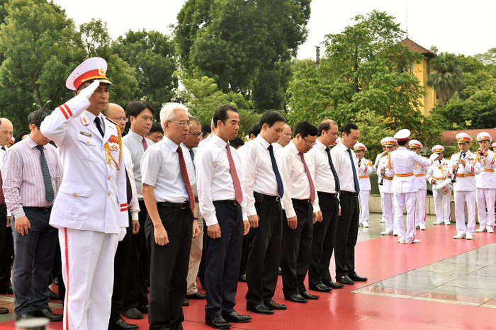 Nhân kỷ niệm 74 năm Quốc khánh 2/9, sáng 30/8, các đồng chí lãnh đạo, nguyên lãnh đạo Đảng, Nhà nước, Mặt trận Tổ quốc Việt Nam đã tới đặt vòng hoa, vào Lăng viếng Chủ tịch Hồ Chí Minh và dâng hương tưởng niệm các anh hùng liệt sĩ.