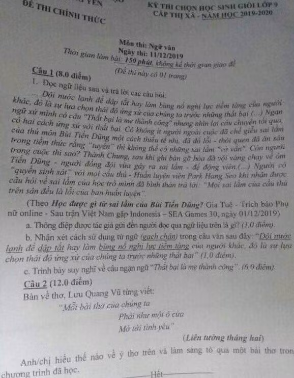 Vừa qua, một Phòng giáo dục và Đào tạo (xin không nêu tên) tổ chức kì thi chọn học sinh giỏi lớp 9 môn Ngữ văn.