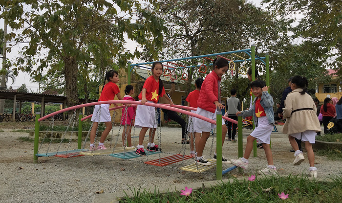 Món quà cô Kiều Giang nói chính là khu vui chơi trong khuôn viên Trường Tiểu học Quảng Thọ (xã Quảng Thọ, huyện Quảng Điền, tỉnh Thừa Thiên - Huế) vừa được Vietjet trao tặng hồi đầu tháng 12.