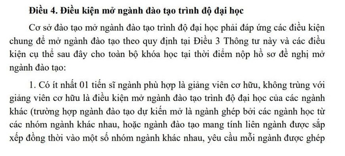 | Điều kiện mở ngành đào tạo trình độ đại học |