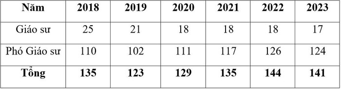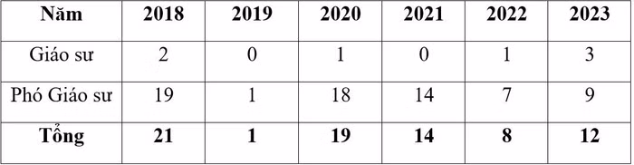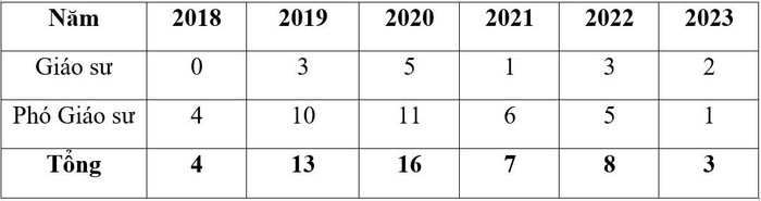 Số lượng giáo sư, phó giáo sư bổ nhiệm trong giai đoạn năm 2018-2023, cụ thể như sau: